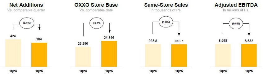 | · | FEMSA Retail1: Proximity Americas total Revenues grew 6.8% and Income from operations decreased 11.8% versus 1Q24. | |