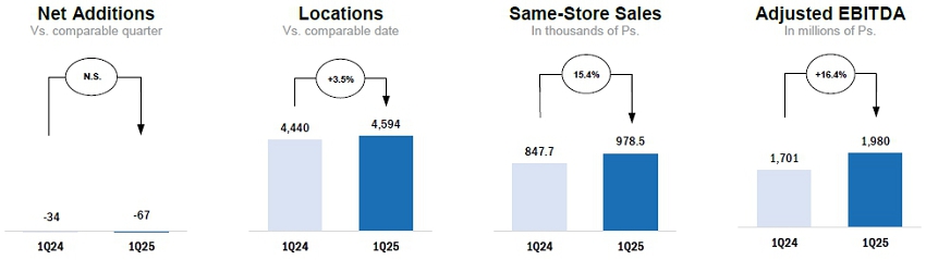 | · | SPIN: Spin by OXXO had 8.9 million active users2 representing 20.9% growth compared to 1Q24 while Spin Premia had 25.2 million active loyalty users2 representing 15.9% growth compared to 1Q24, and an average tender3 of 42.5% which increased from 35.1% tender in 1Q24. | |