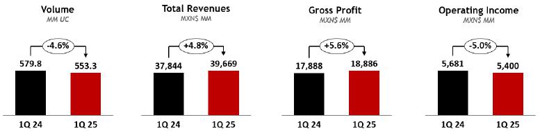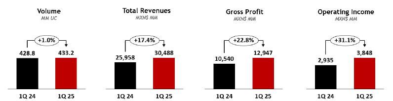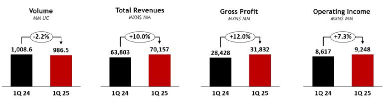 | · | COCA-COLA FEMSA: Total Revenues and Income from Operations grew 10.0% and 7.4%, respectively against 1Q24. |